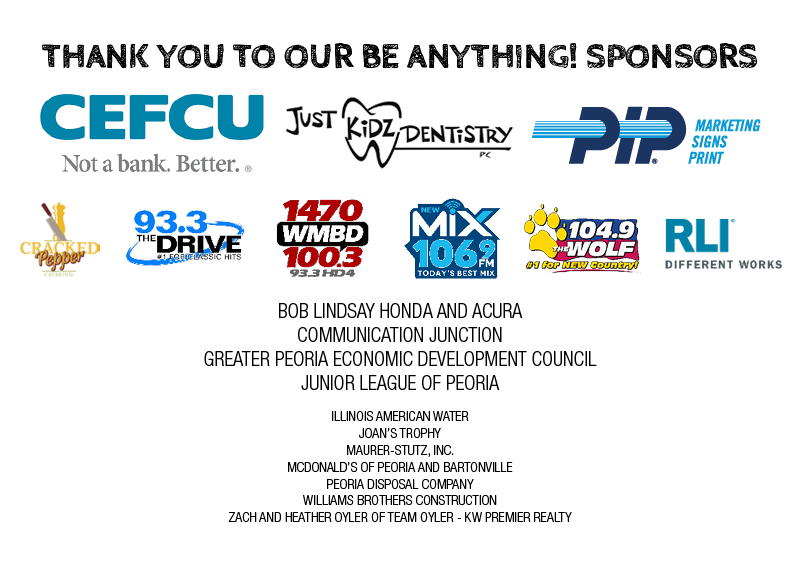 Complete your participation in this fundraiser by attending Cocktails & Careers at Trailside Event Center, with Be Anything! experiences for adults along with a live auction, on September 28, 2018. This event is emceed by WMBD’s Greg Batton, and tickets include two complimentary drinks as well as hors d’oeuvres provided by Cracked Pepper catering.